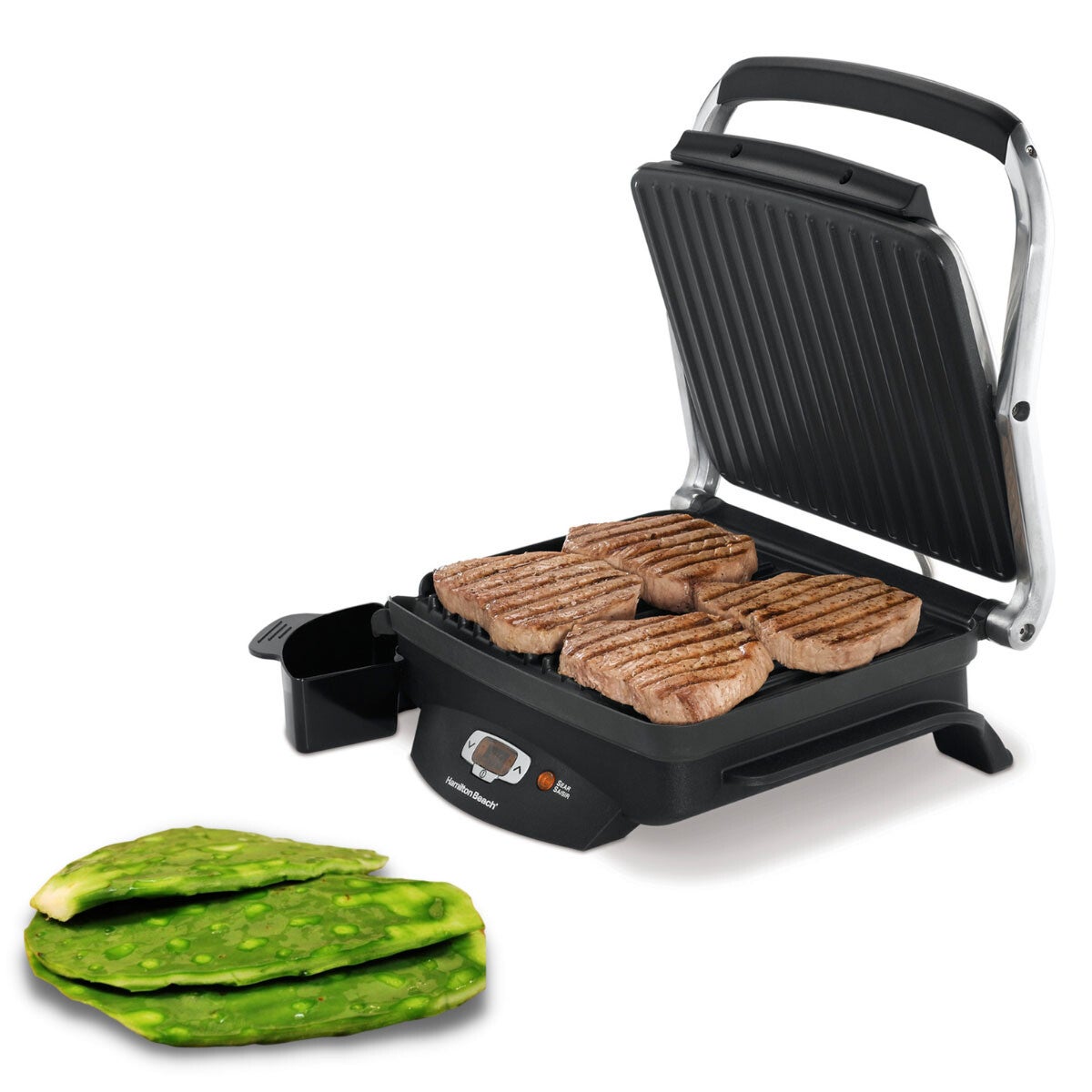 La parrilla eléctrica para interiores Hamilton Beach 2533 es perfecta para preparar carnes, hamburguesas, pollo, verduras y más con resultados jugosos y dorados. Su diseño moderno y funcional te permite cocinar de forma rápida, práctica y con menos grasa.