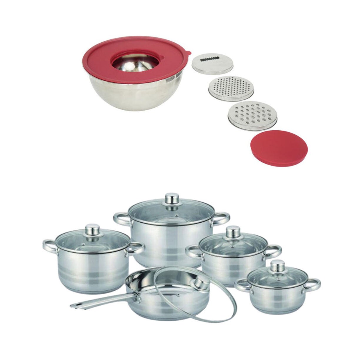 ¿Deseas llevar tu cocina al siguiente nivel de eficiencia y elegancia? Con este combo de alto desempeño disponible en AM3K, tendrás todo lo necesario para preparar banquetes completos con resultados profesionales. La robusta batería Liftor de 10 piezas, diseñada para inducción, ofrece una conducción de calor excepcional en cada cacerola y sartén. Se complementa perfectamente con el bowl multifuncional de Yajad, que no solo sirve para mezclar, sino que integra ralladores intercambiables para agilizar la preparación de tus ensaladas y pastas. ¡La combinación perfecta de durabilidad y versatilidad!