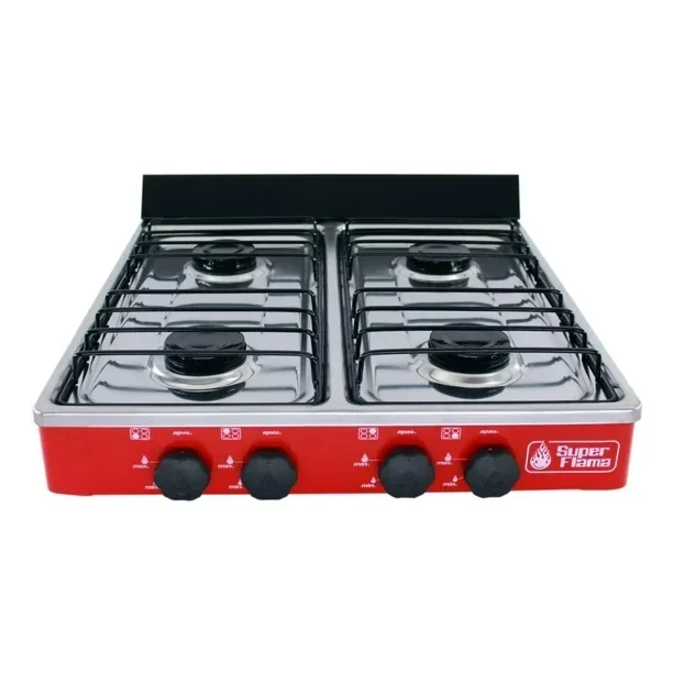 - PARRILLA 4 QUEMADORES DE GAS COLOR ROJO MARCA SUPERFLAMA
