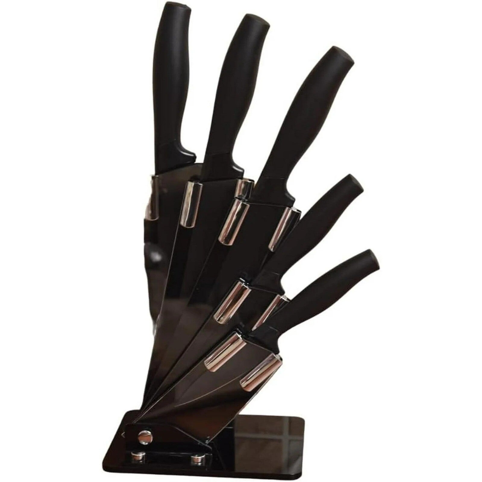 Y401-NE06 Set de cuchillos negros con base 6 piezas