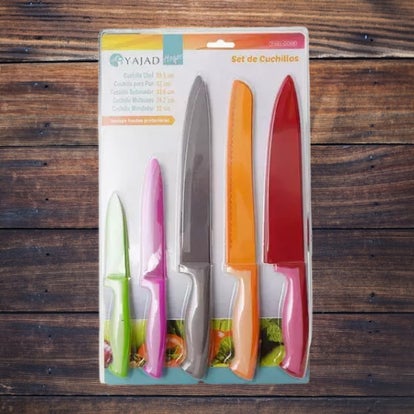 SET DE 5 CUCHILLOS MULTICOLOR CON FUNDA YAJAD HOGAR